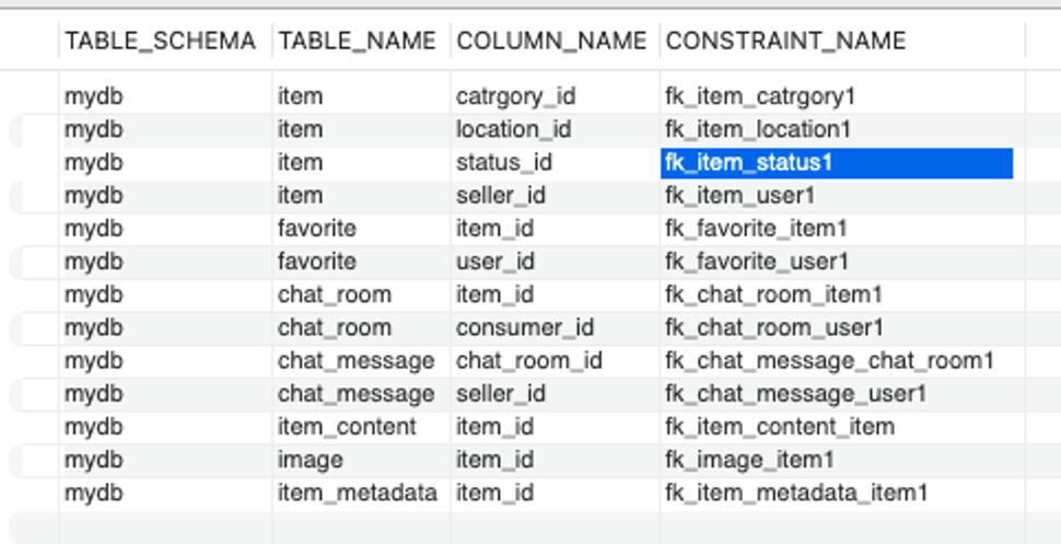 - 지금 있는 외래키를 확인할 수 있는 방법