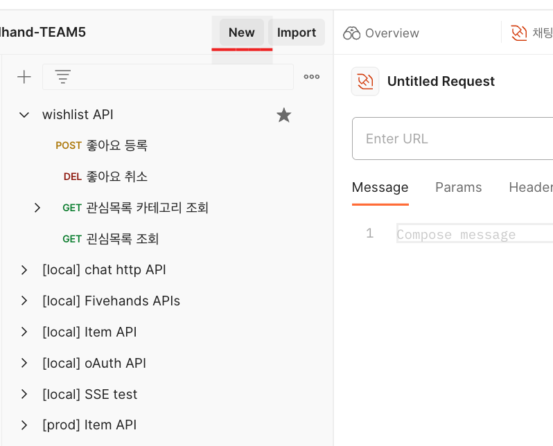 Postman에서 message를 저장할 수가 있어서 한번 써두면 반복해서 테스트하기 편했어요.
